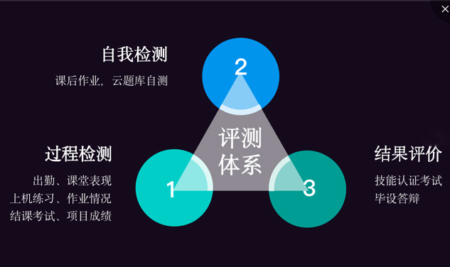 “北大青鸟基于当前国家教育政策及院校人才培养需求,基于行业发展和岗位需求,推出了校企合作专属课程,以就业为核心导向,兼顾对口升学。”